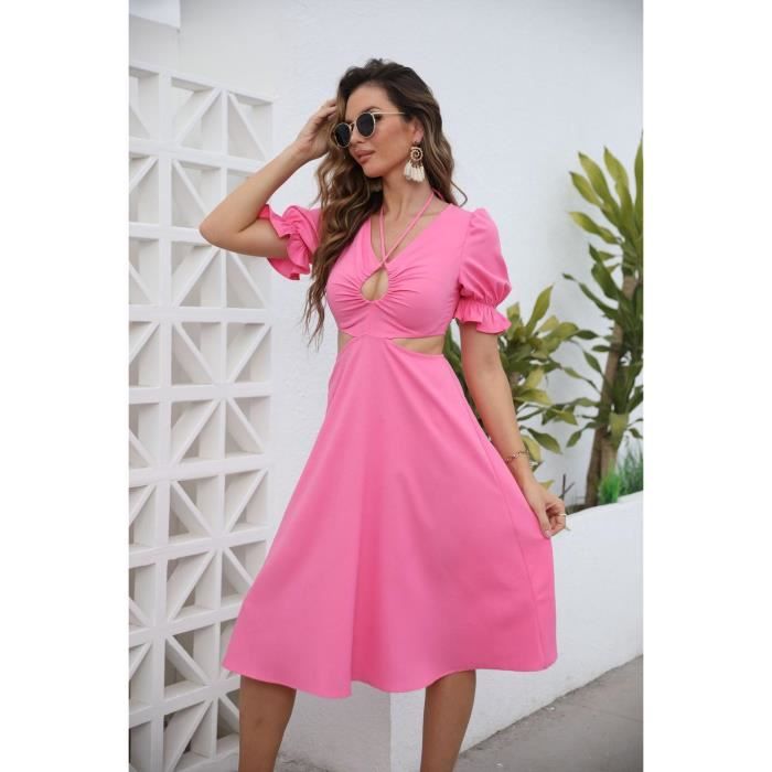 robe col v rouge