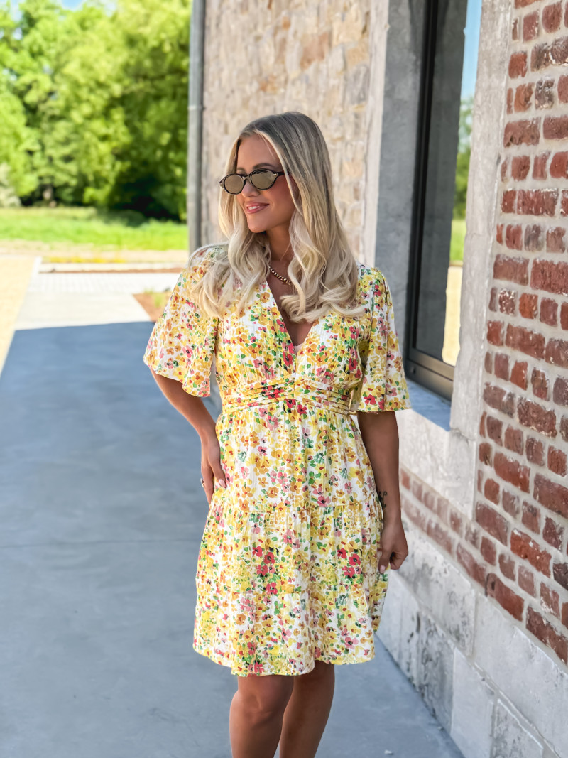 robe jaune fleurie courte