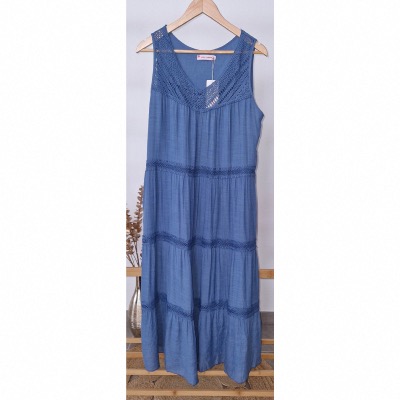 robe longue blanche fleur bleu