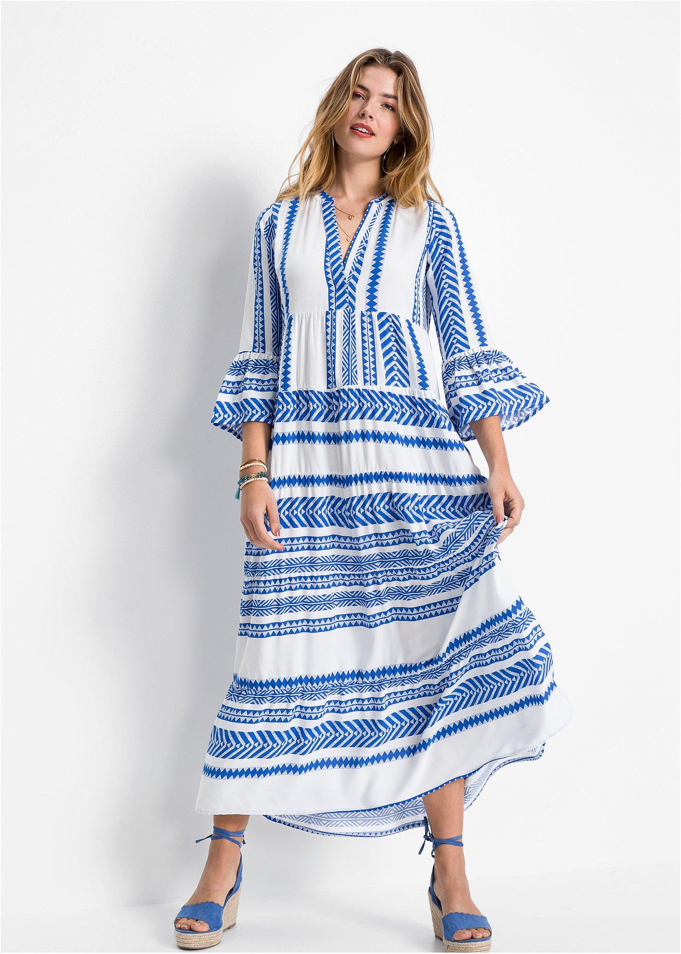 robe longue bleu blanc