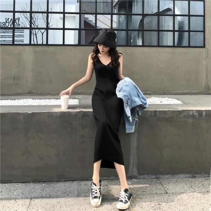 robe longue col v manche courte