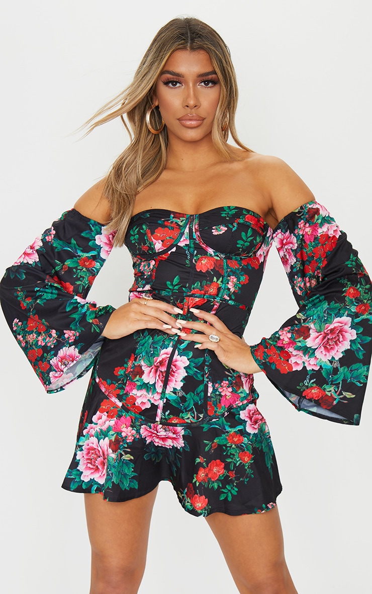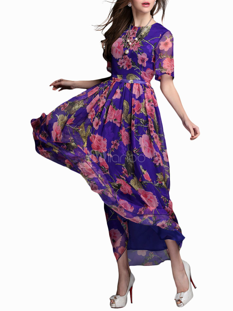 robe longue fleurie col bateau