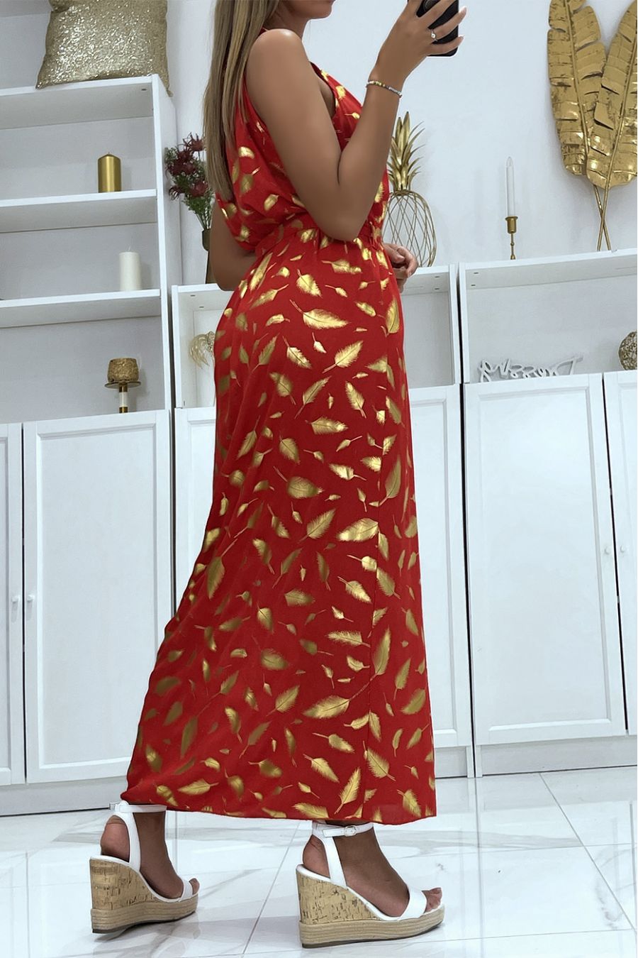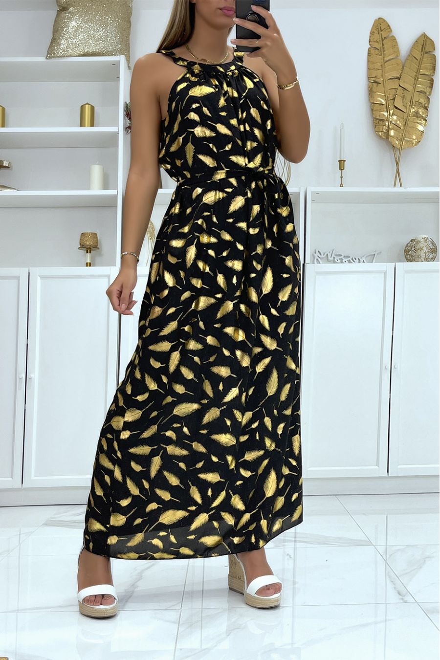robe longue motif plume