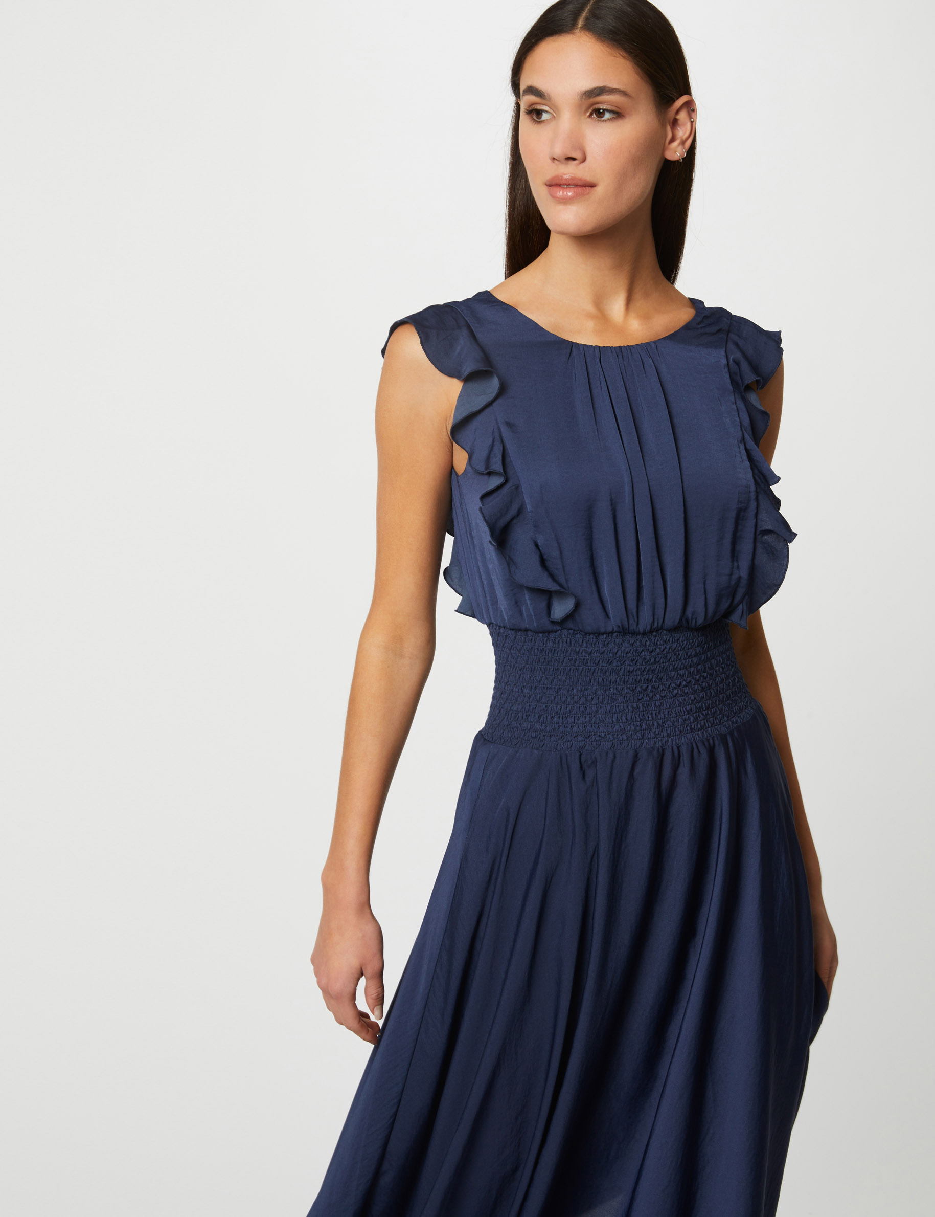 robe longue noire smockee
