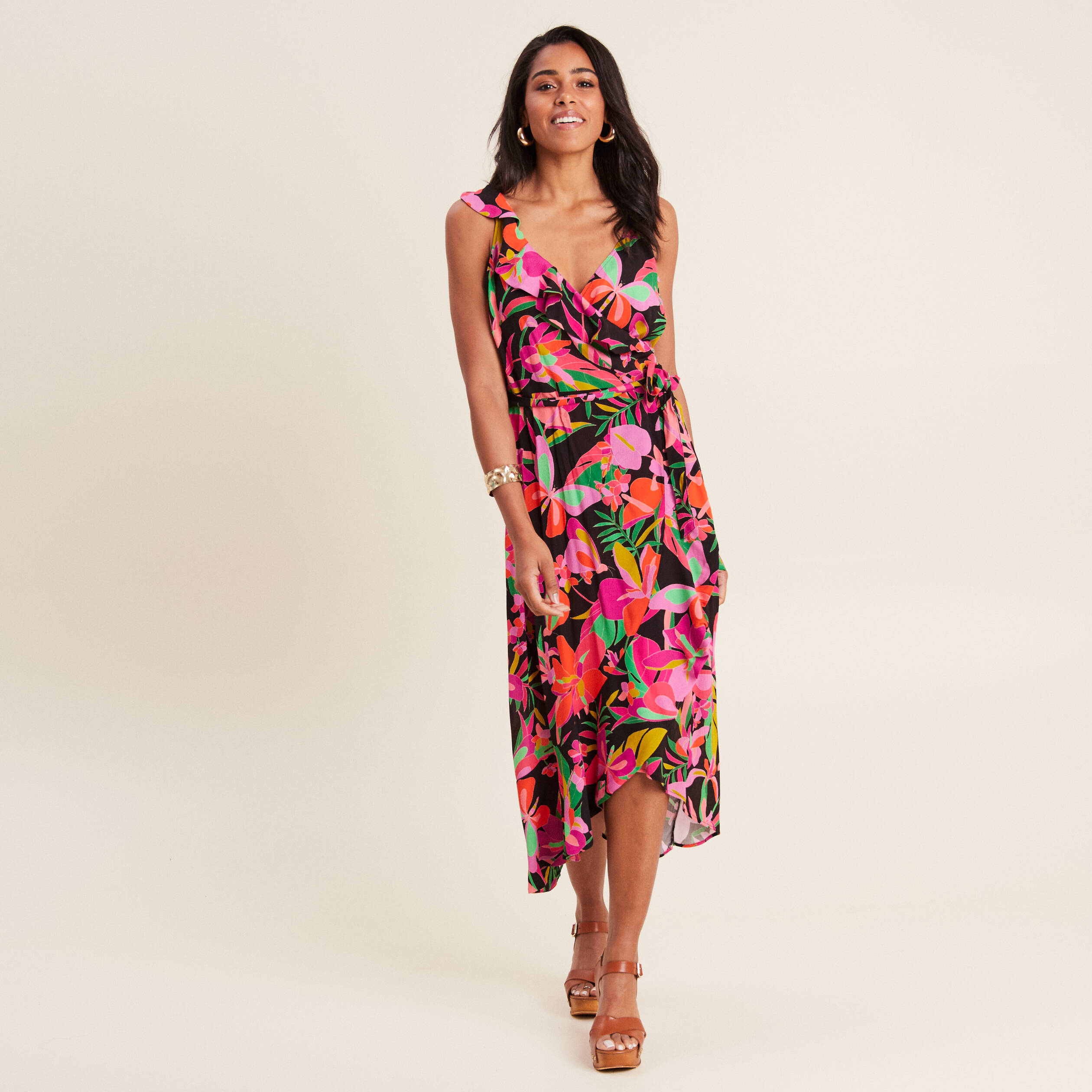 robe longue portefeuille rose