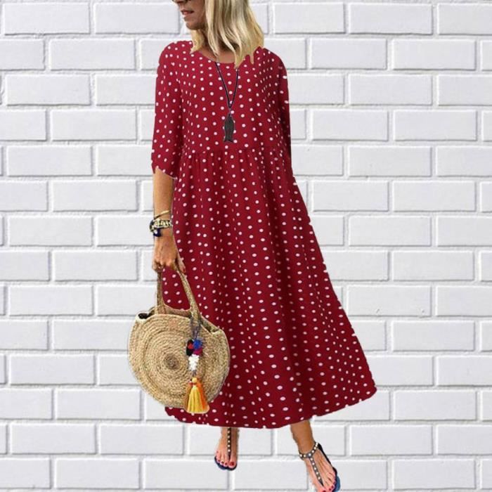 robe longue rouge pois