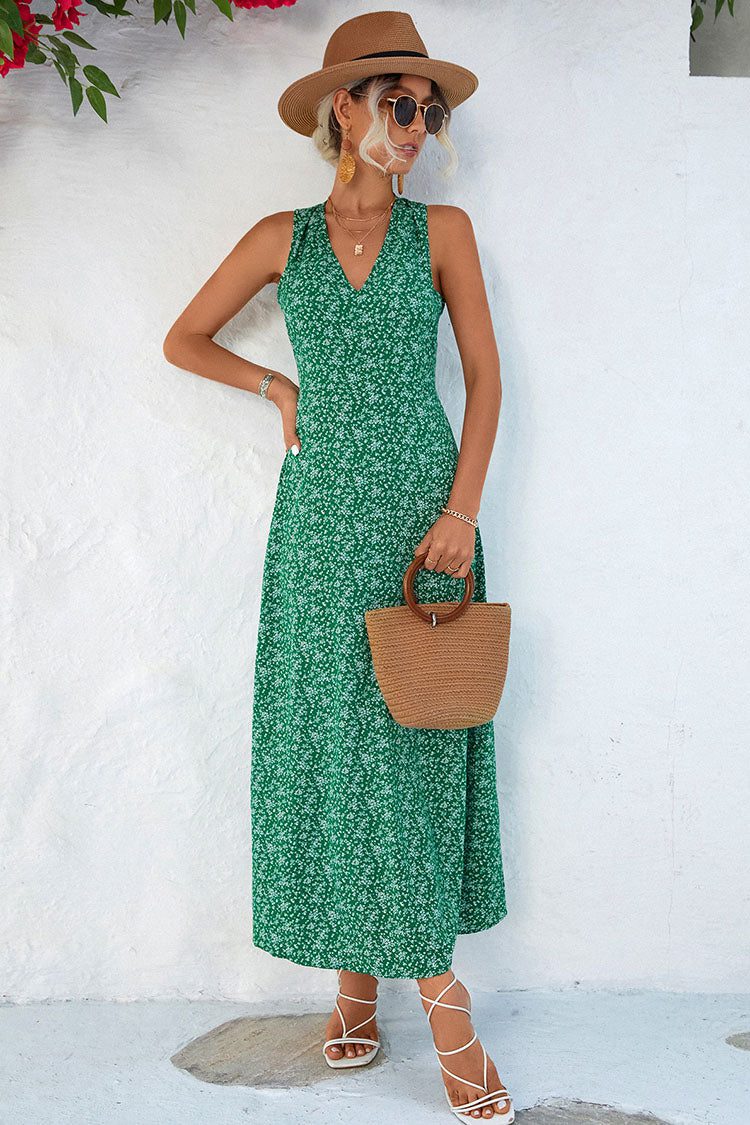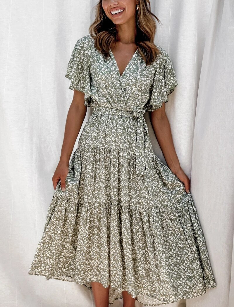 robe longue verte a fleurs