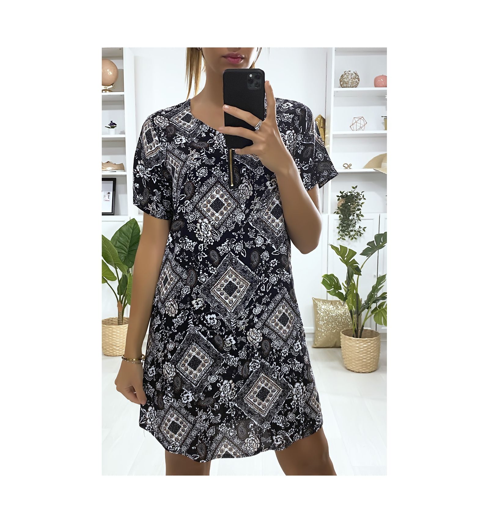 robe noir col blanc