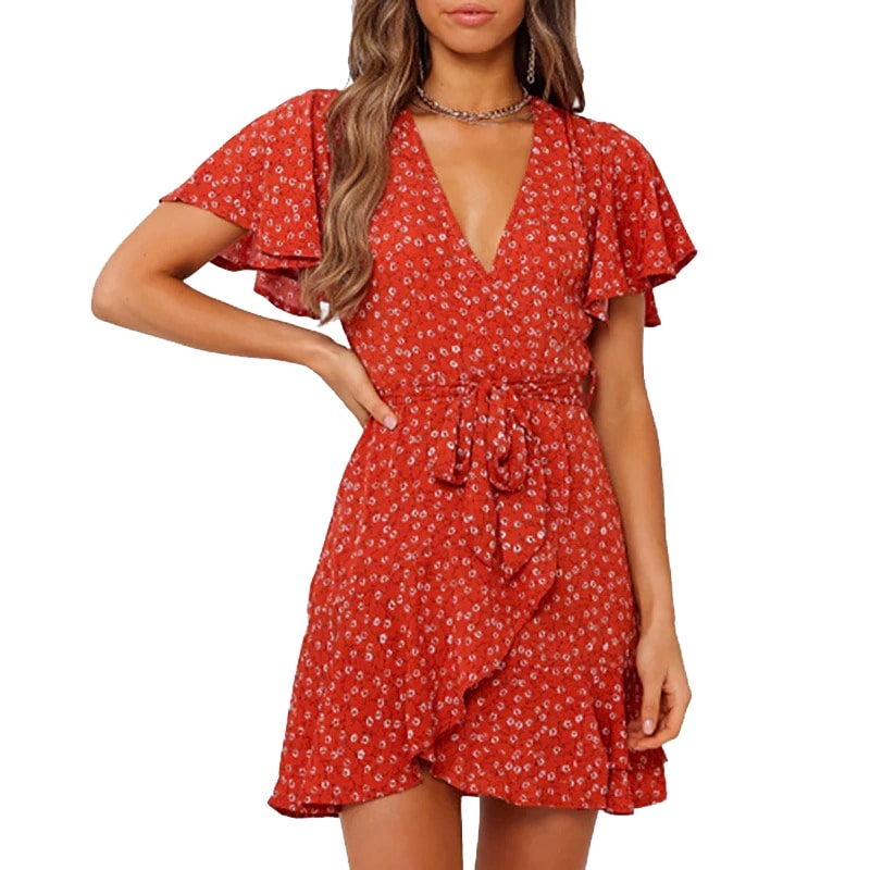 robe portefeuille rouge a pois blanc