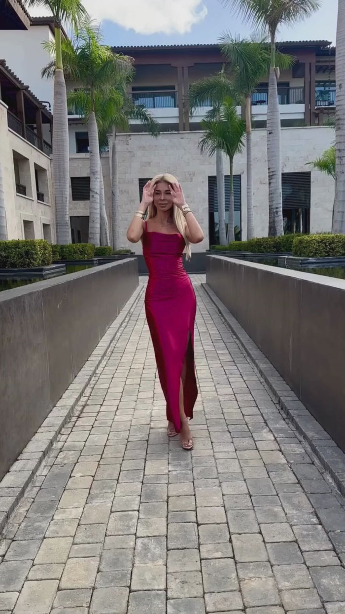 robe rouge longue fendue devant