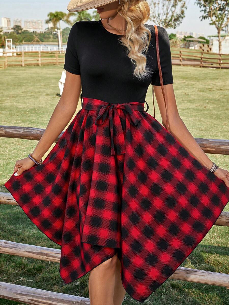shein robe carreaux
