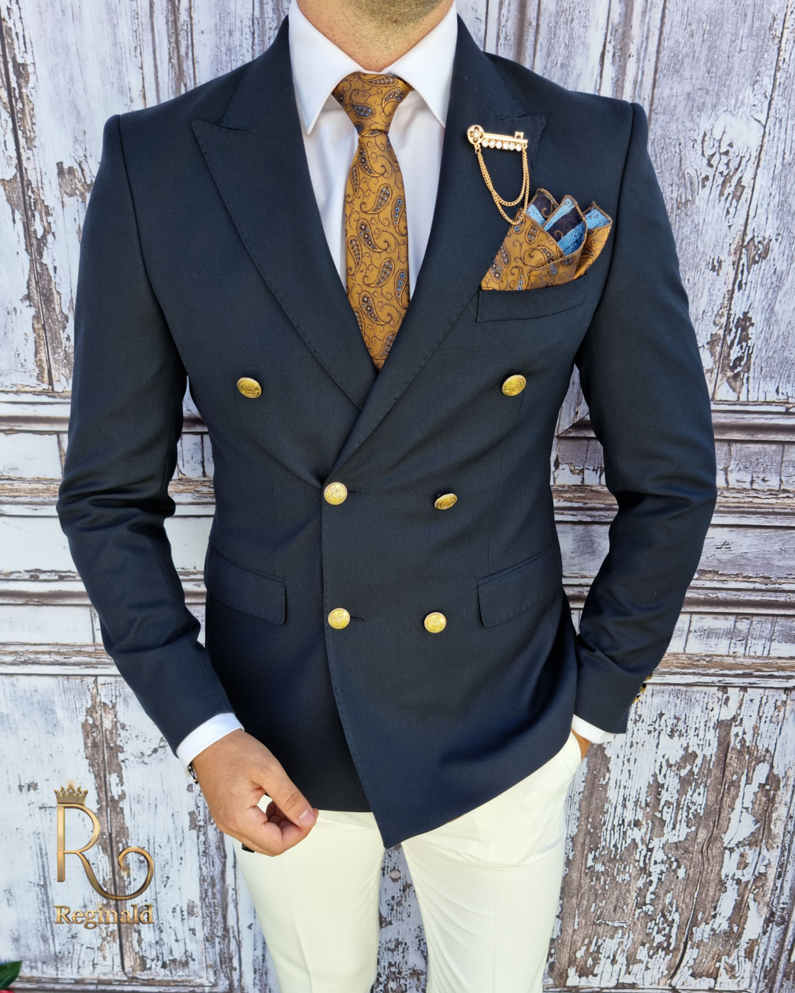 blazer blu con bottoni oro