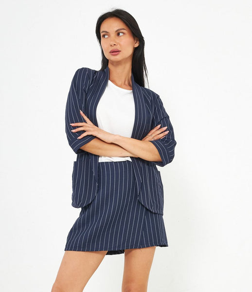 blazer blu gessato donna