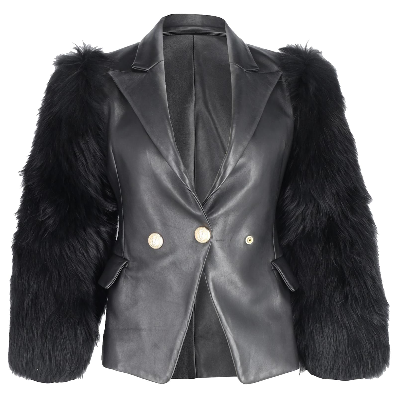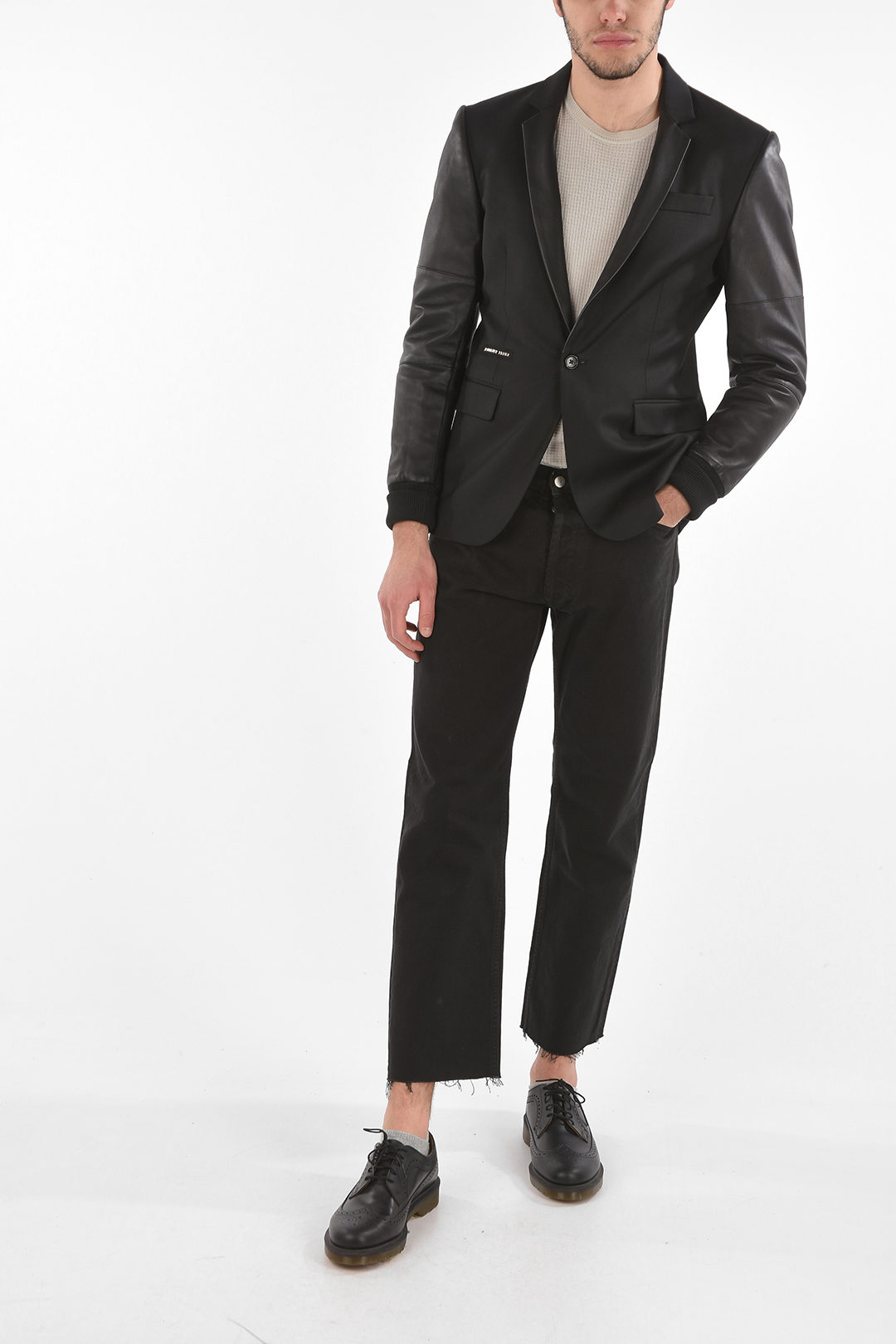 blazer con maniche in pelle