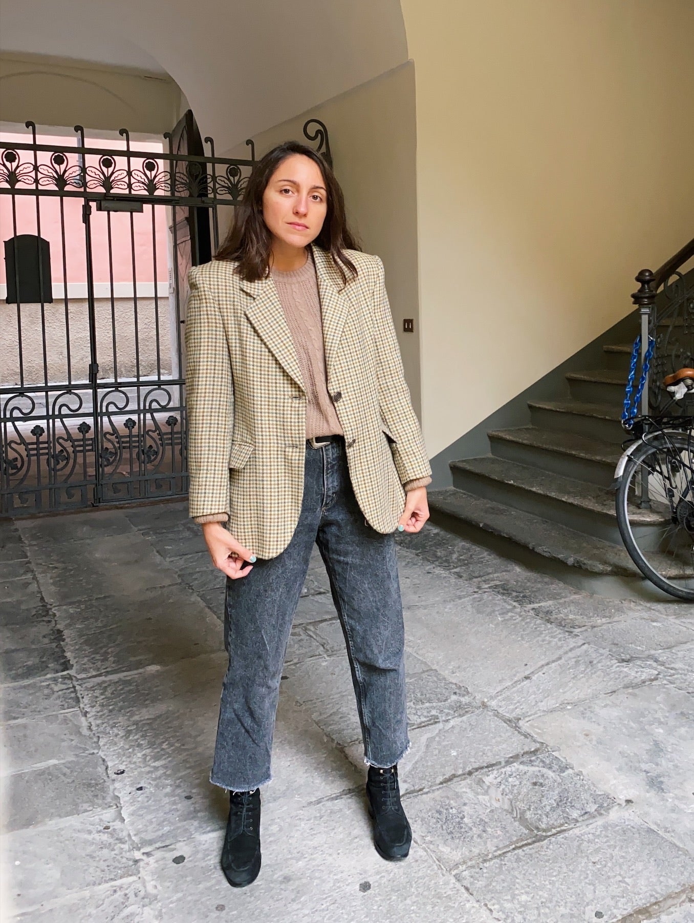 blazer pied de poule verde