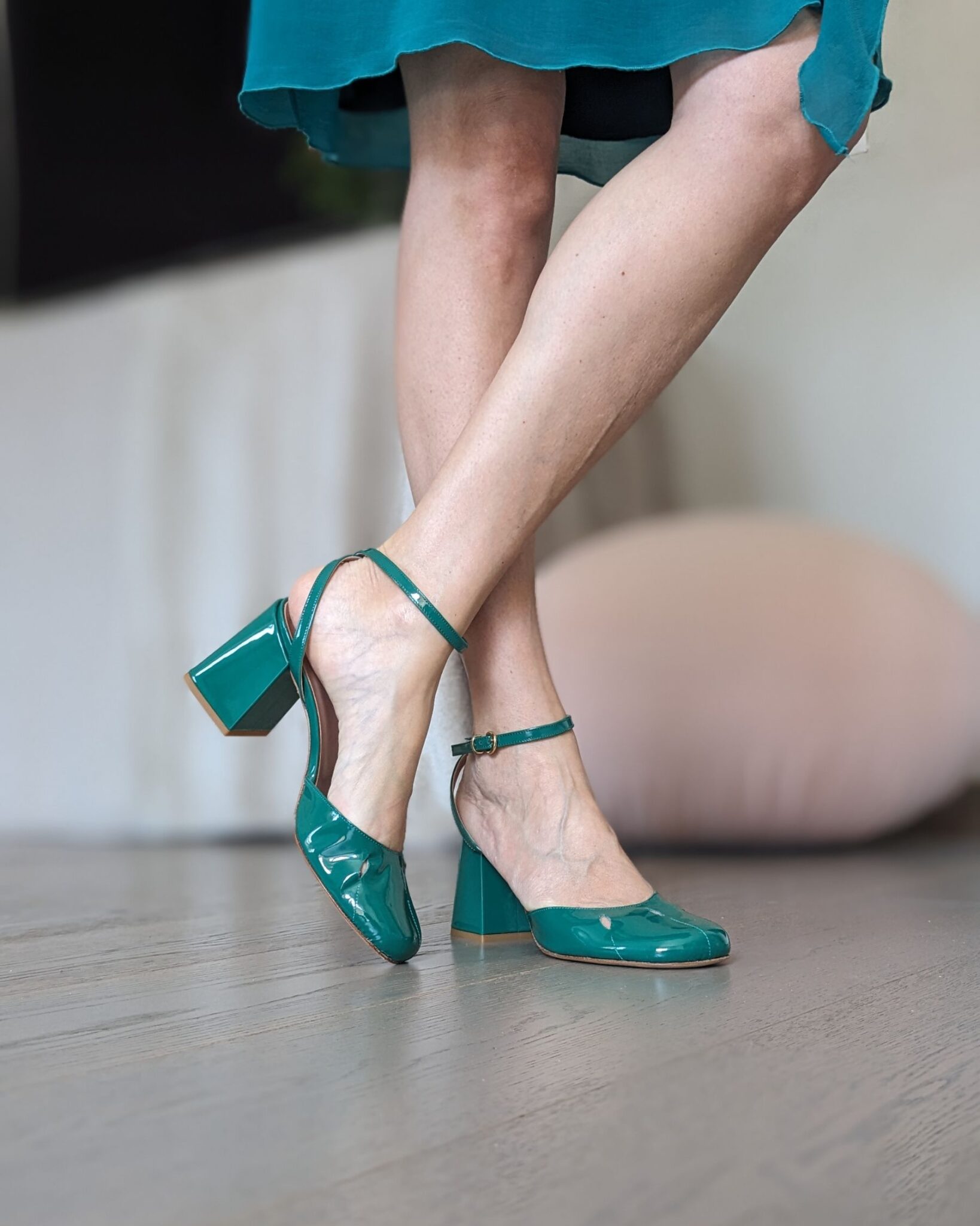 decollete verde tacco largo