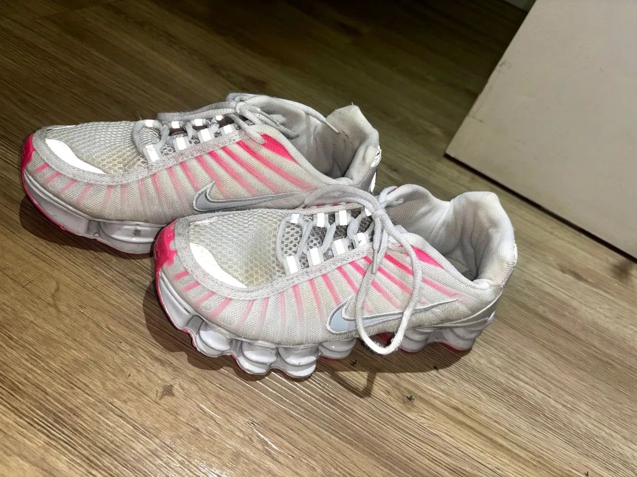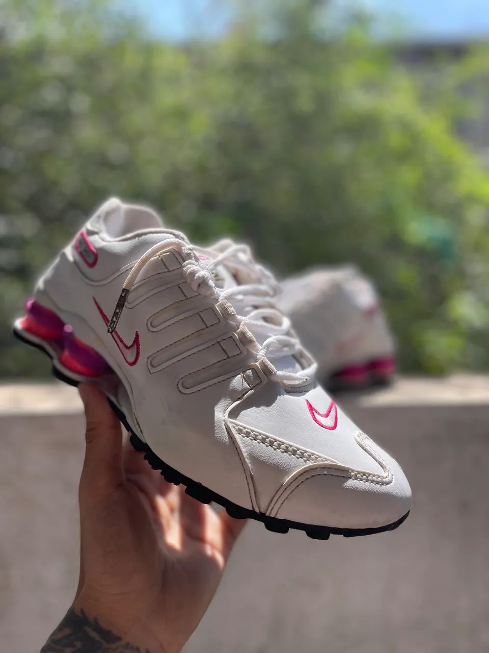 nike shox feminino rosa e branco