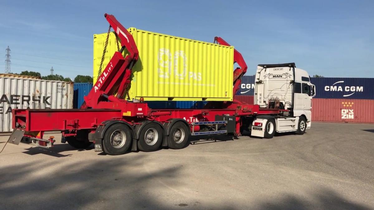 camion grue porte conteneur