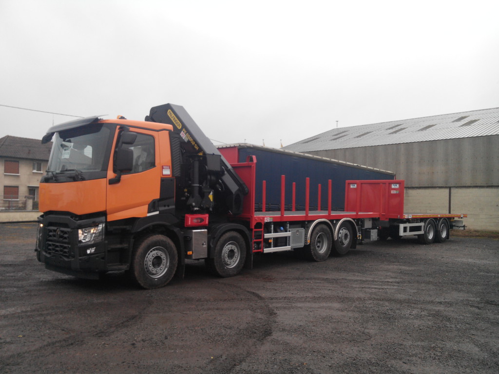 remorque plateau avec grue