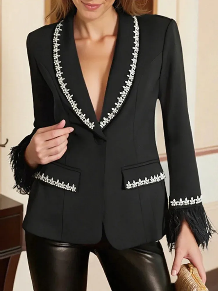 blazer nero piume