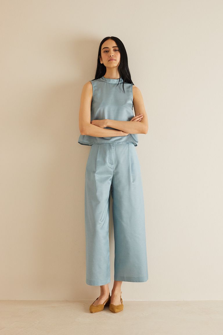 pantaloni shantung di seta