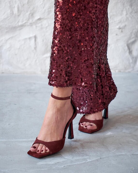 scarpe con tacco bordeaux
