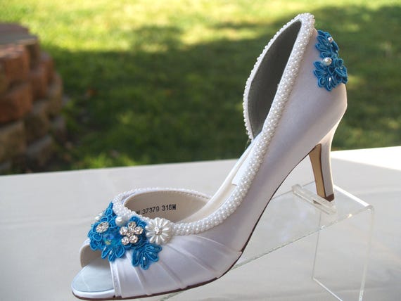 scarpe sposa bianche e blu