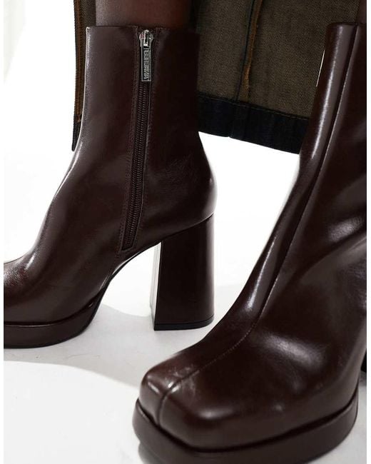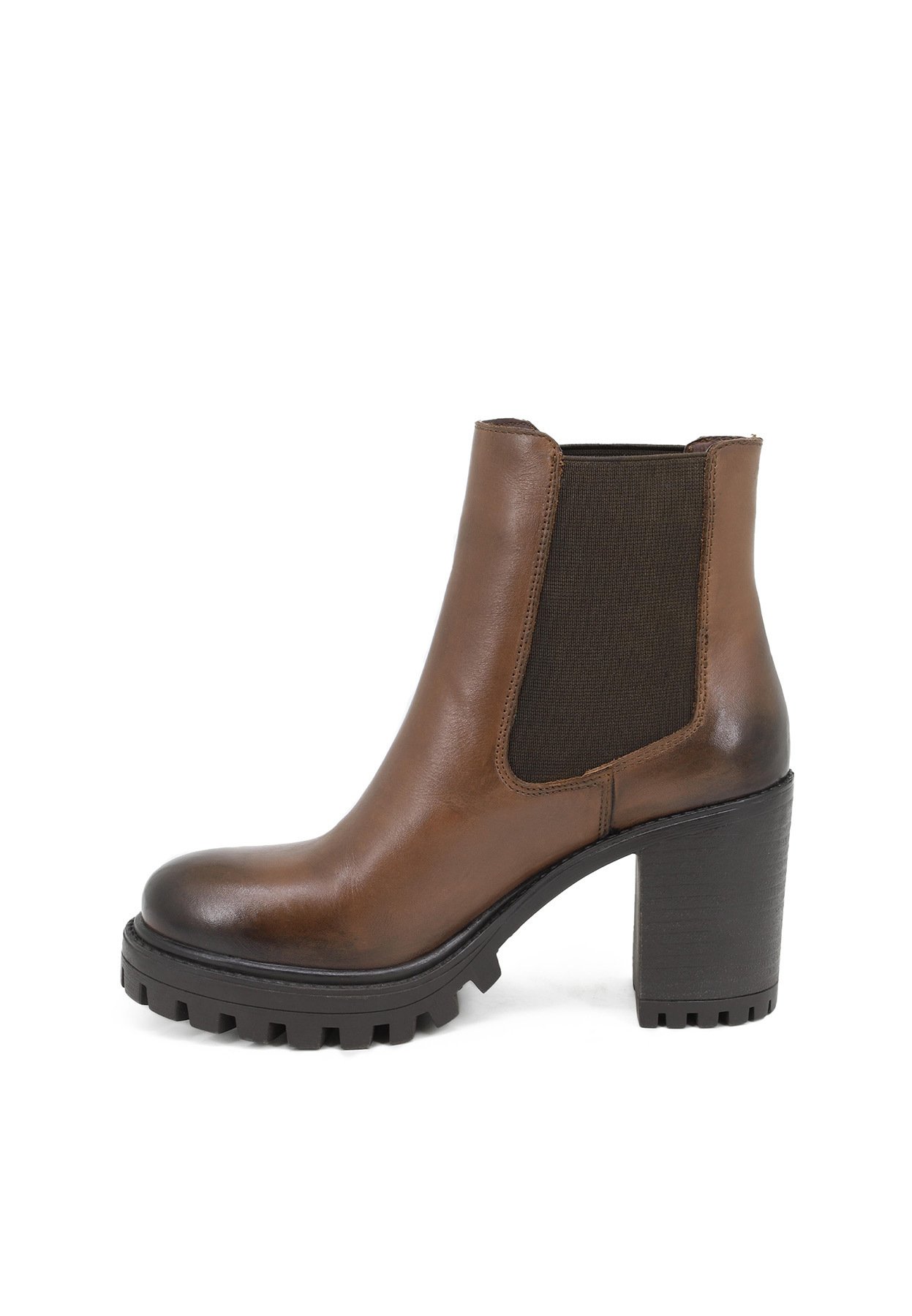 stivaletti con tacco e plateau marroni