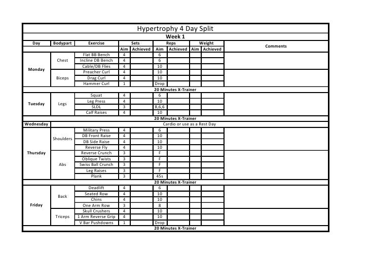 4 day workout plan