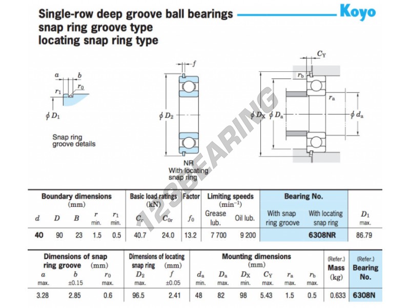 6308 bearing dimensions