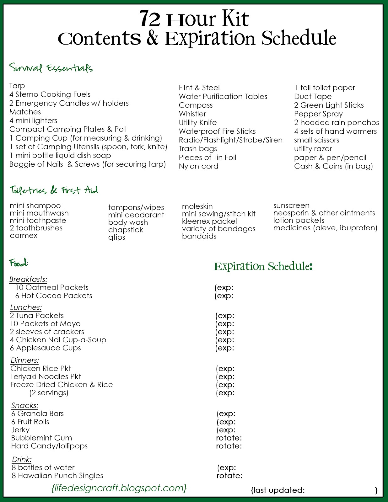72 hour kit list