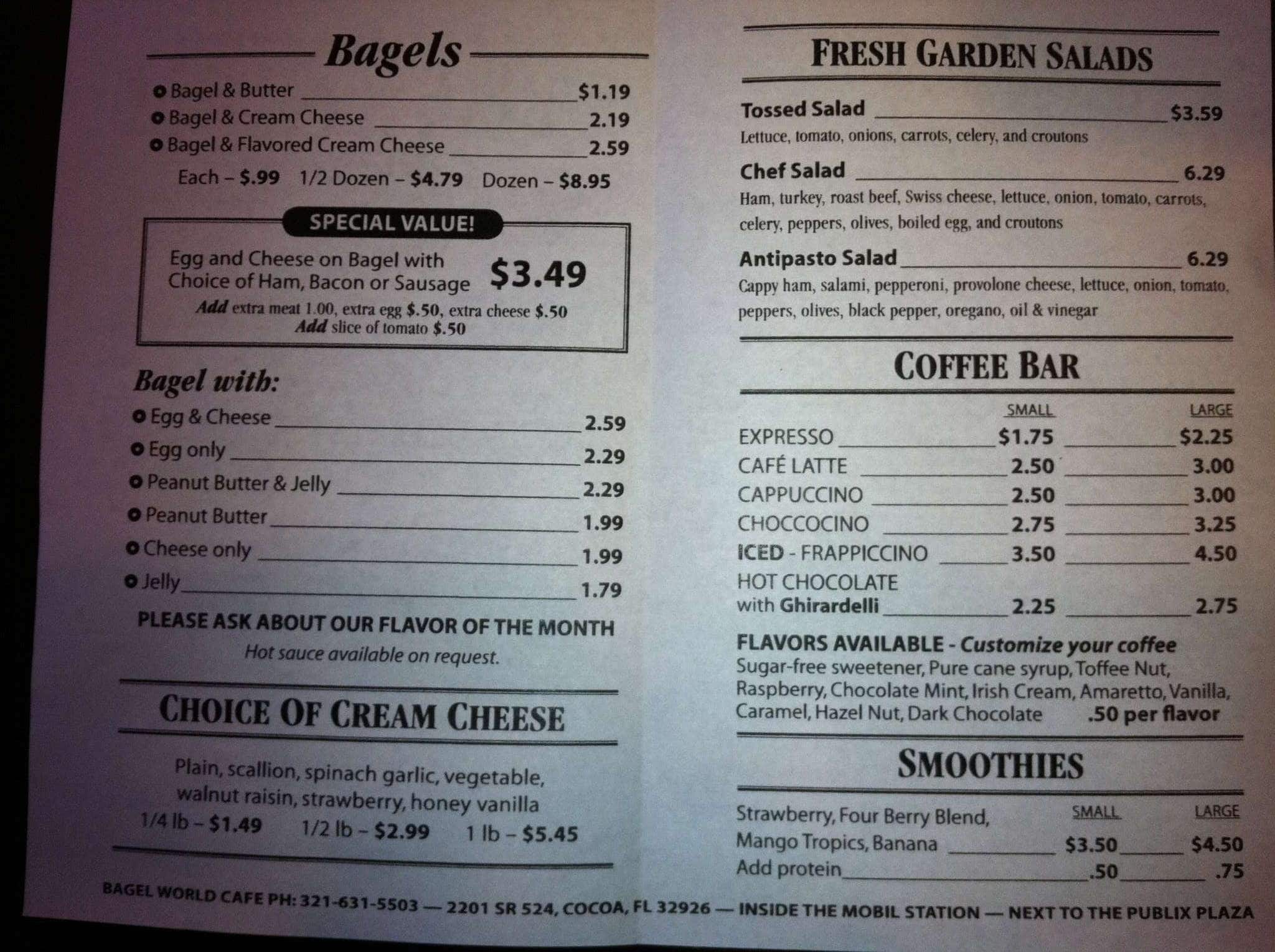 bagel world menu