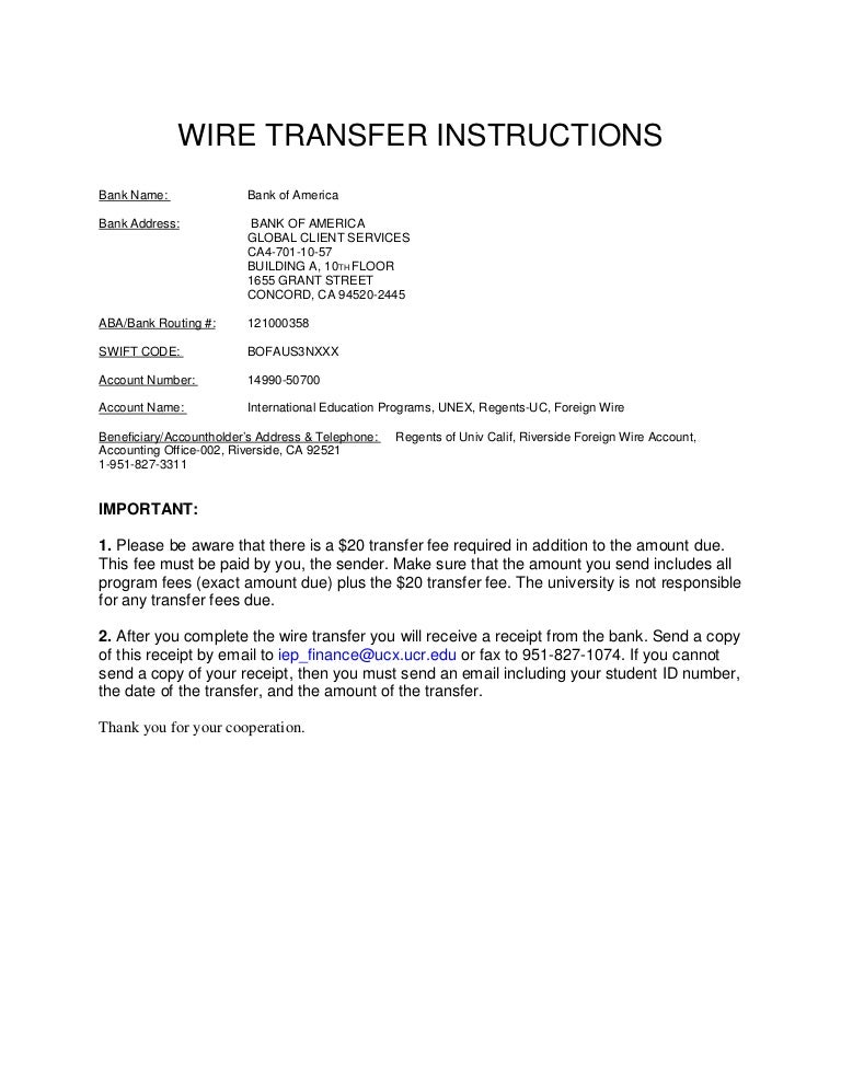 bank of america transfer fee