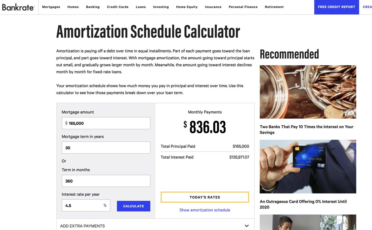 bankrate mortgage calculator with amortization