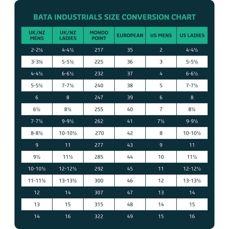 bata size chart