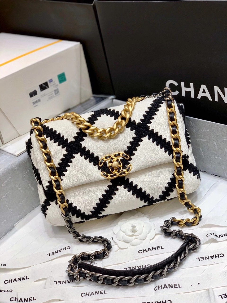black and white chanel bag