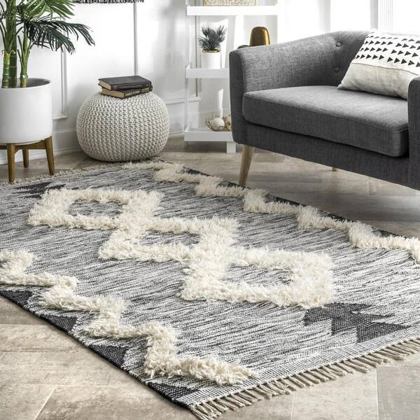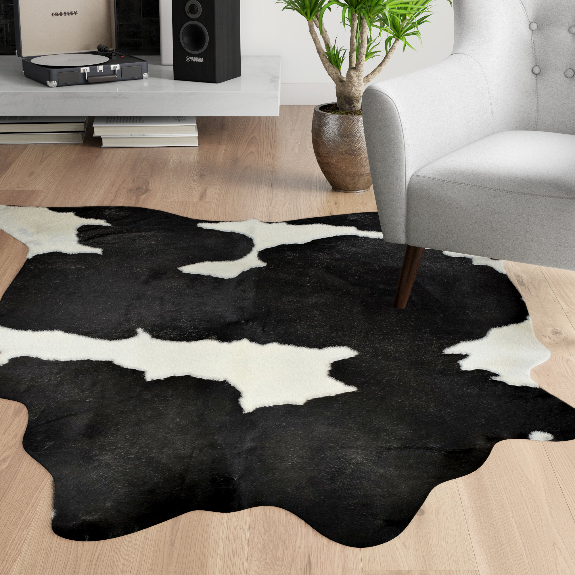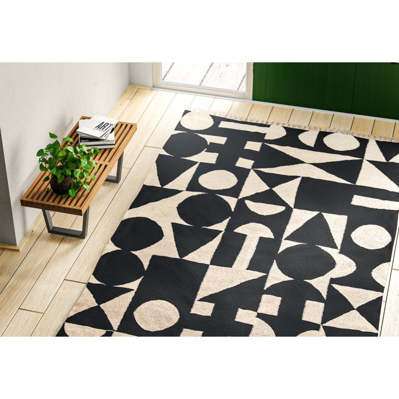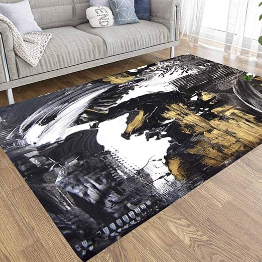 black and white living room rug