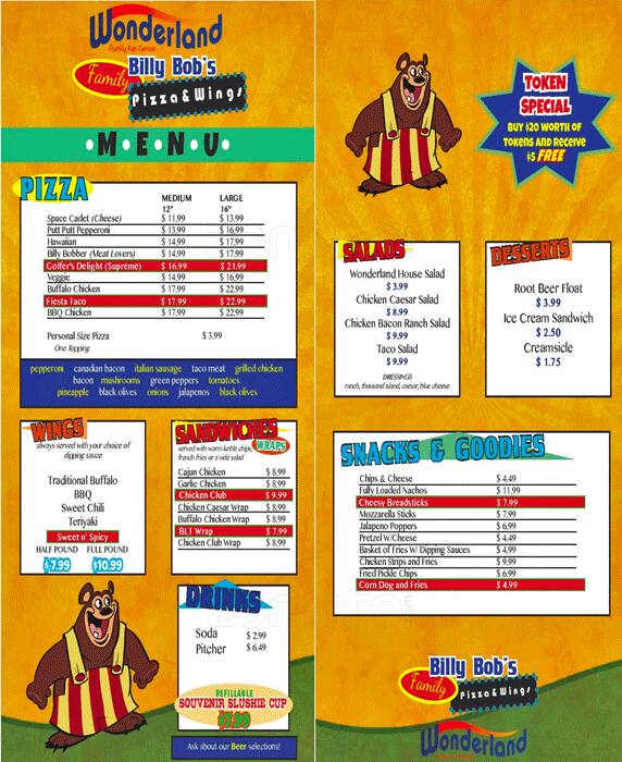 bob's pizza menu