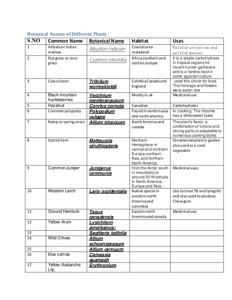 botanical names