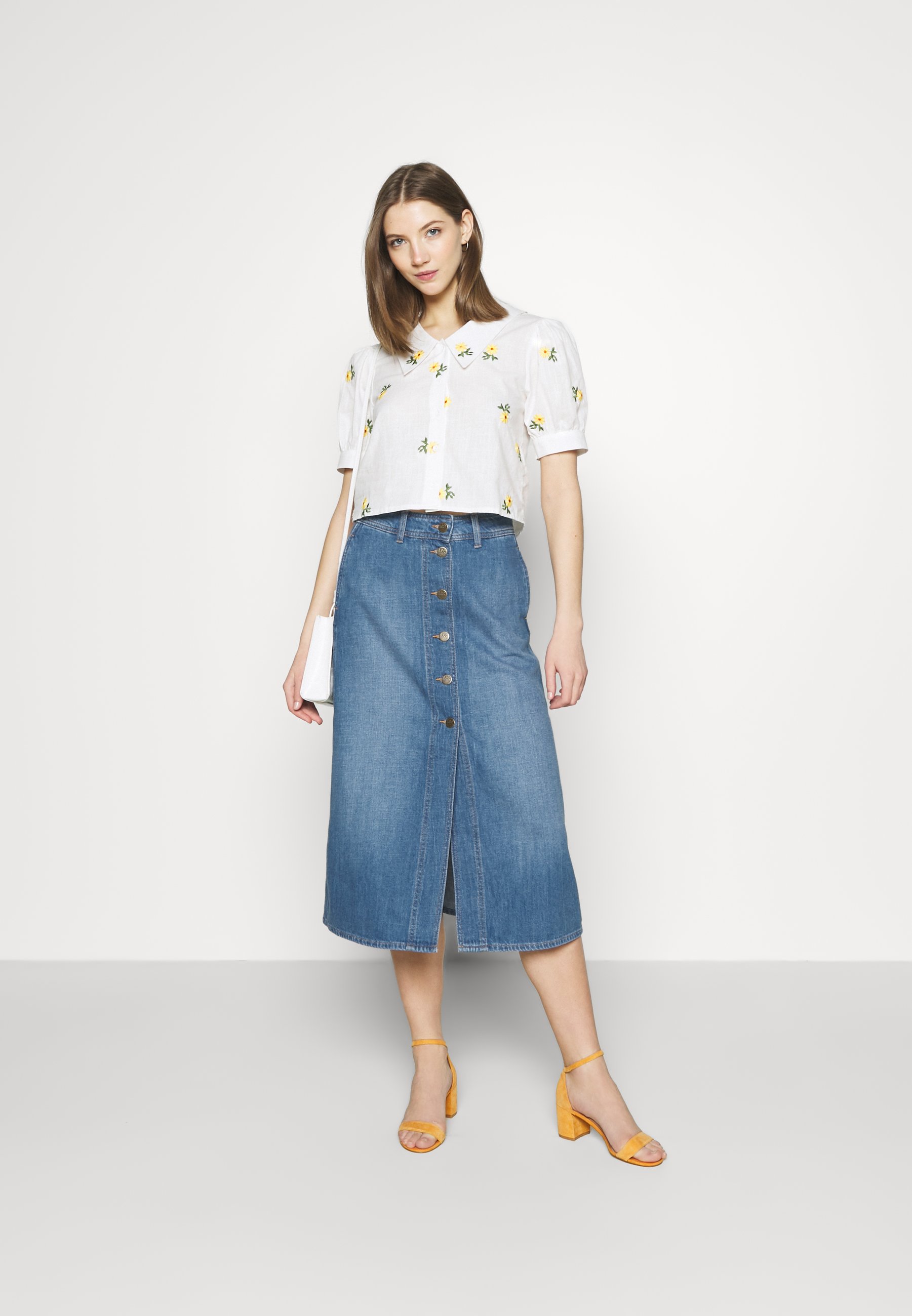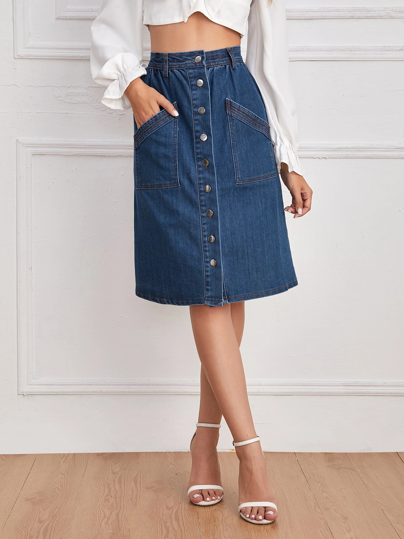 button denim skirt