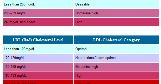cholesterol level normal range