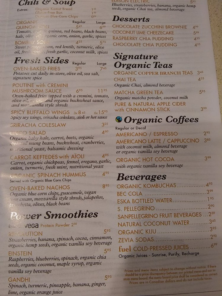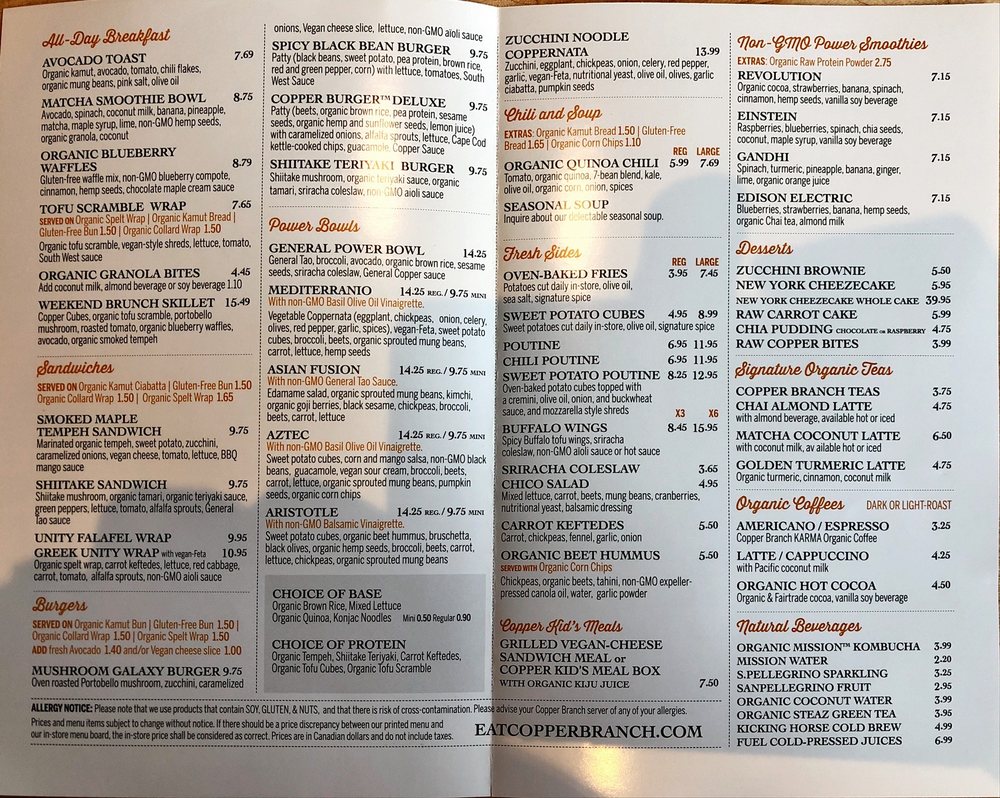copper branch menu