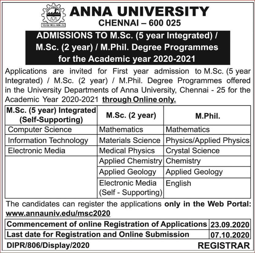 courses in anna university