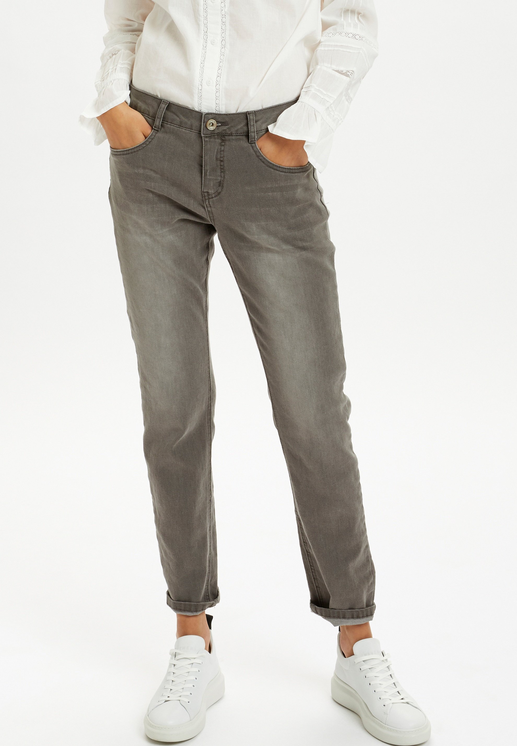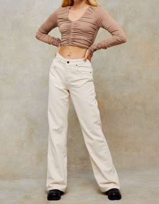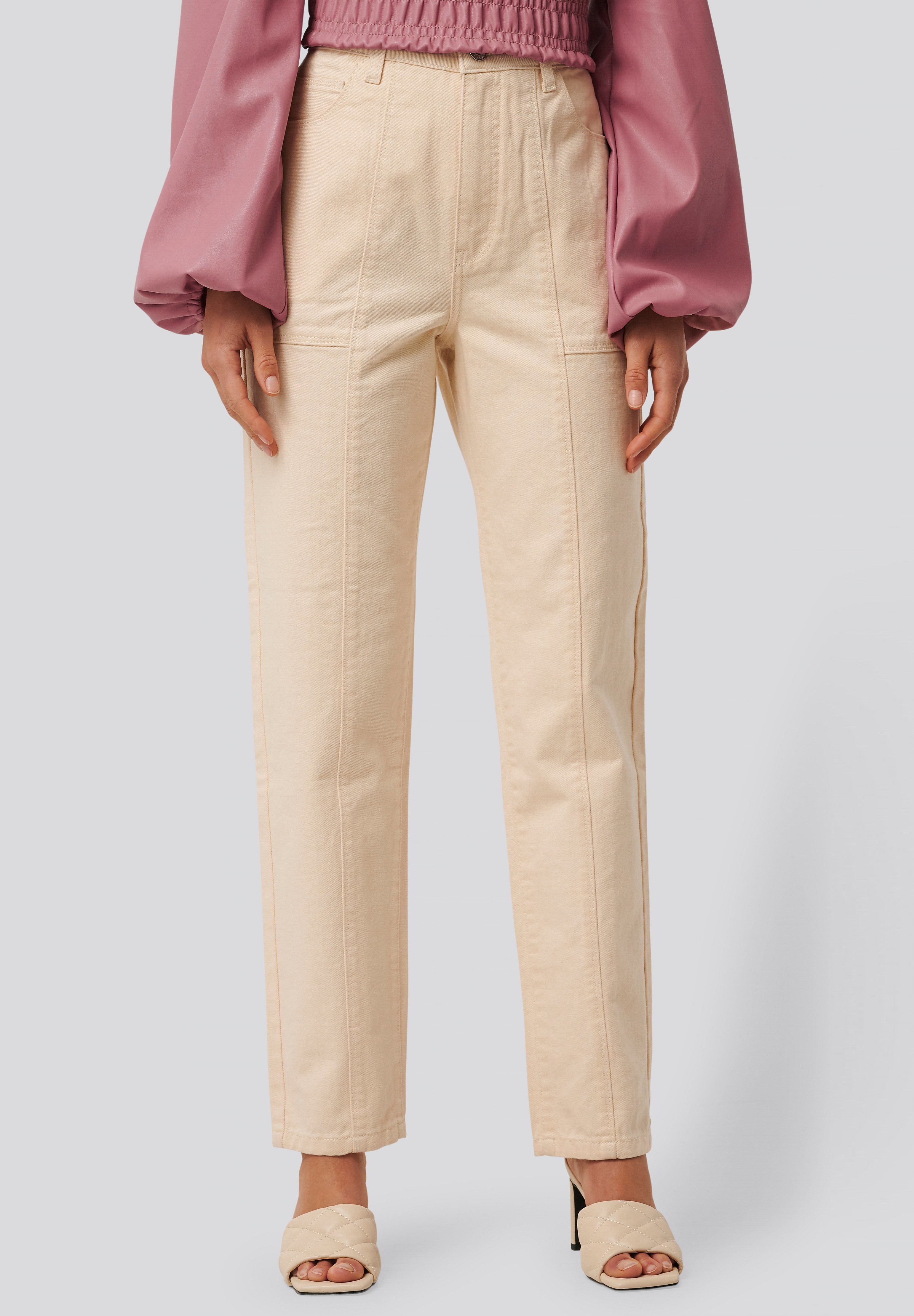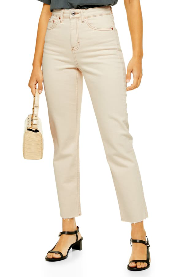 cream straight leg jeans