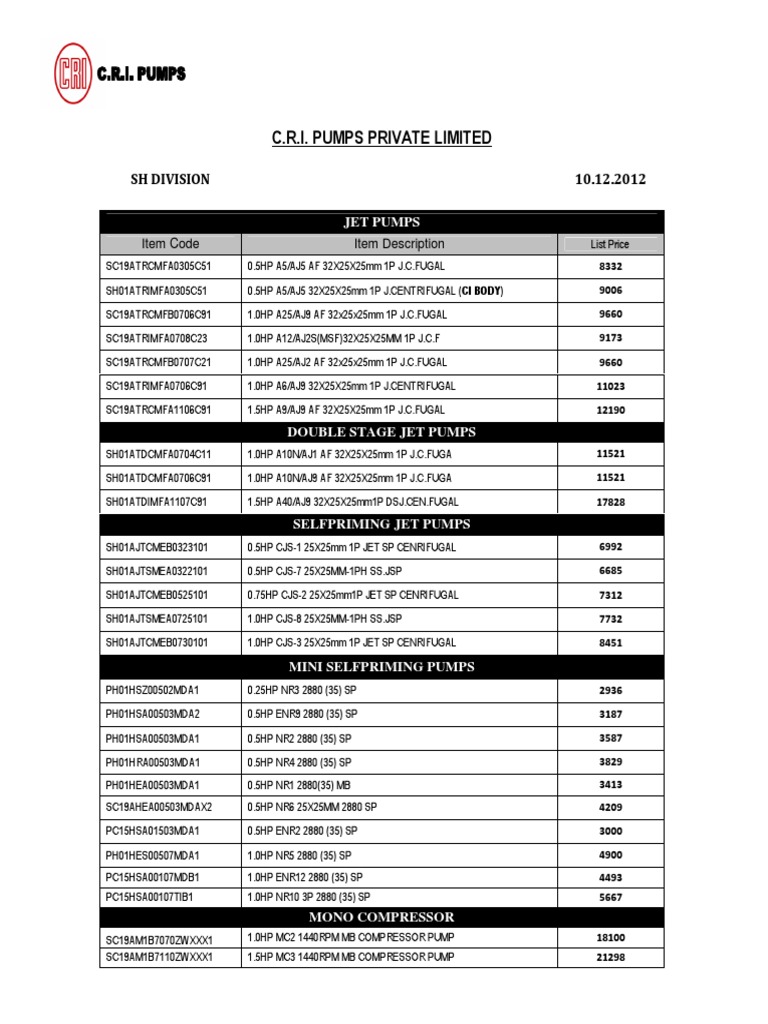cri submersible pump 1.5 hp price