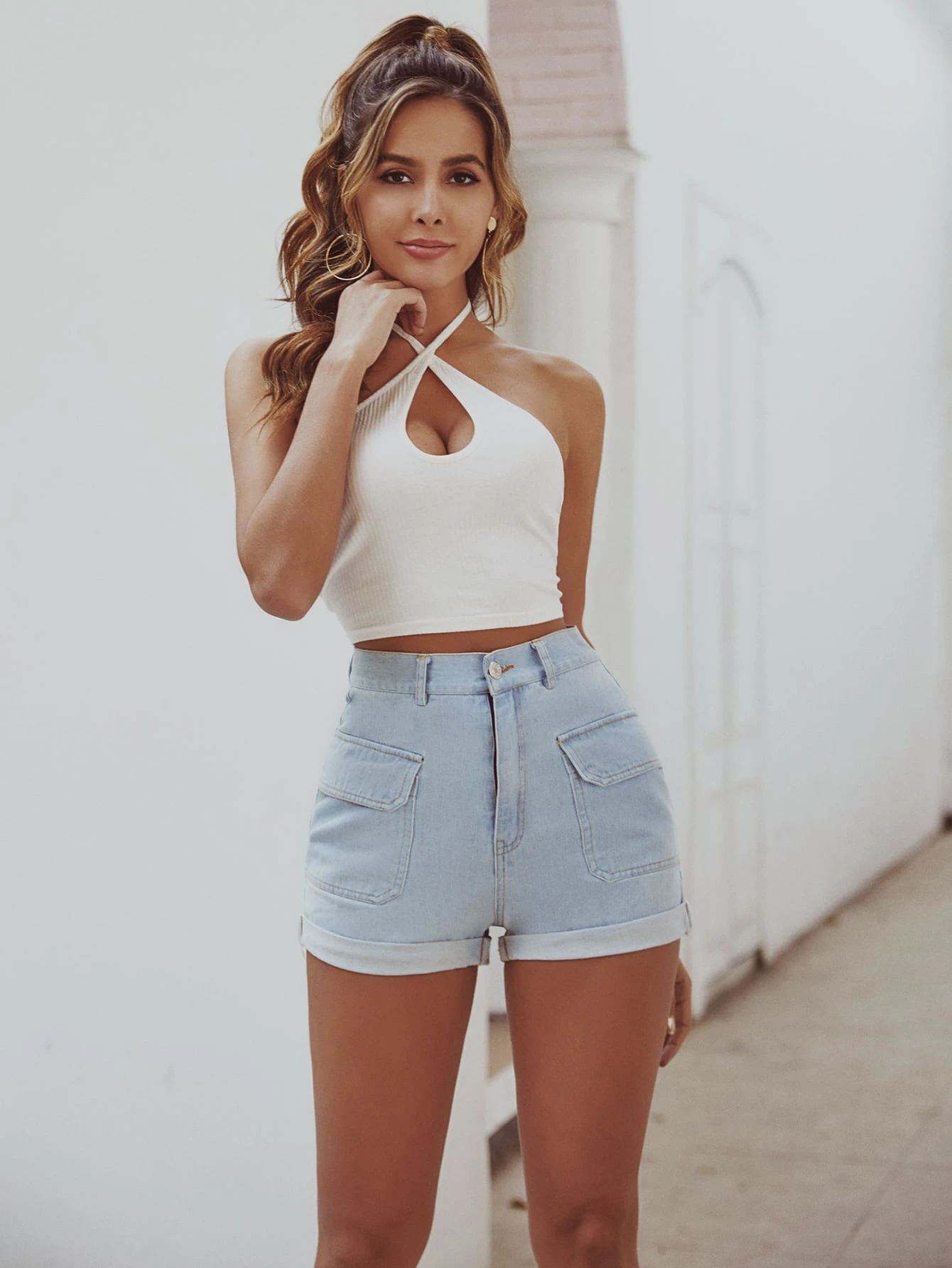denim cargo shorts