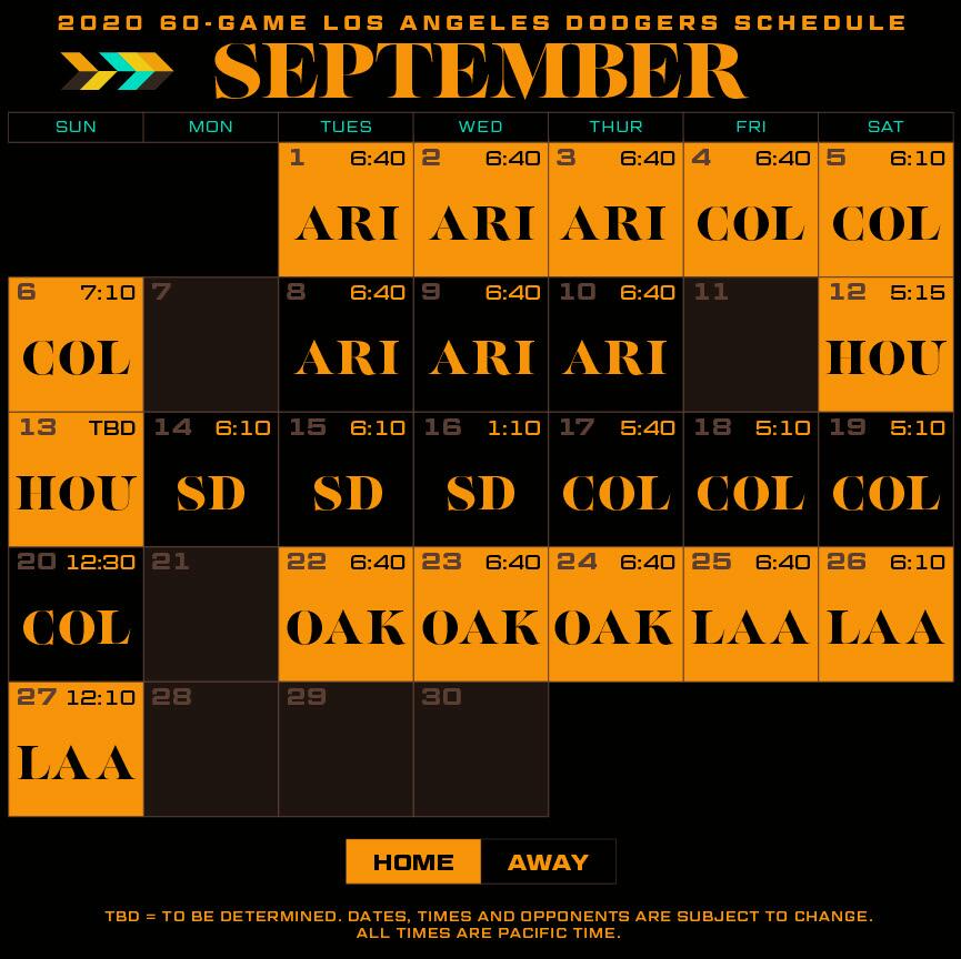 dodgers 2020 schedule