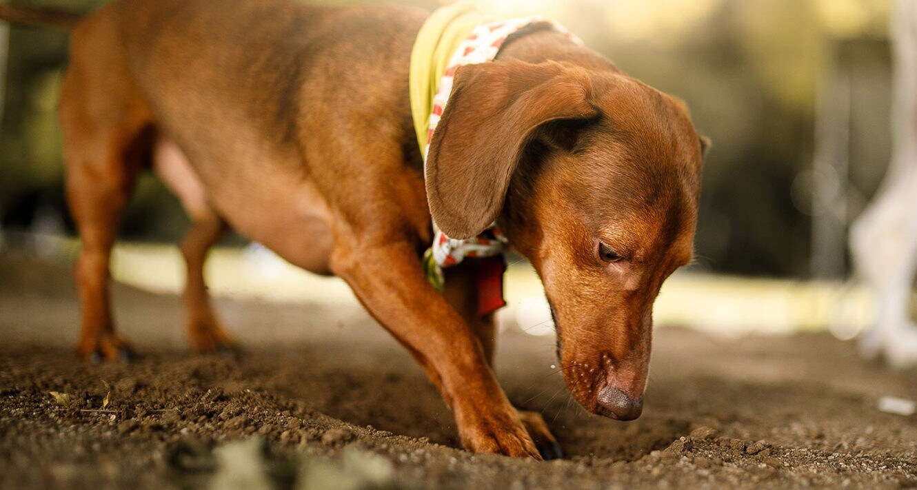 dog digging in bed