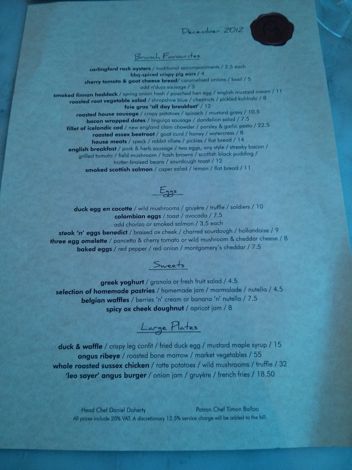 duck and waffle menu