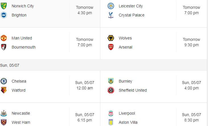 epl fixtures june 2020